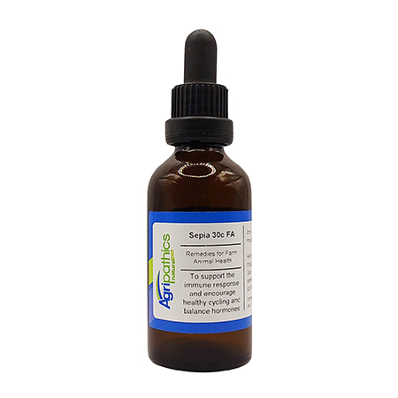 Sepia 30c is supplied in liquid form, which we find to be the easiest and most effective method of administration for all farm animals. Homoeopathic remedies can be given directly into the animal's mouth, added to feed, or mixed into drinking water. All methods are equally effective.