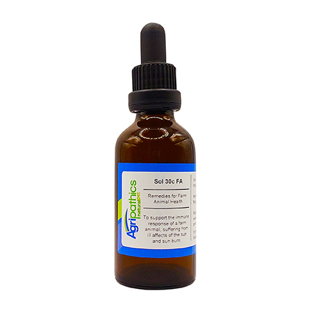 Sol 30c is supplied in liquid form, which we find to be the easiest and most effective method of administration for all farm animals. Homoeopathic remedies can be given directly into the animal's mouth, added to feed, or mixed into drinking water. All methods are equally effective.