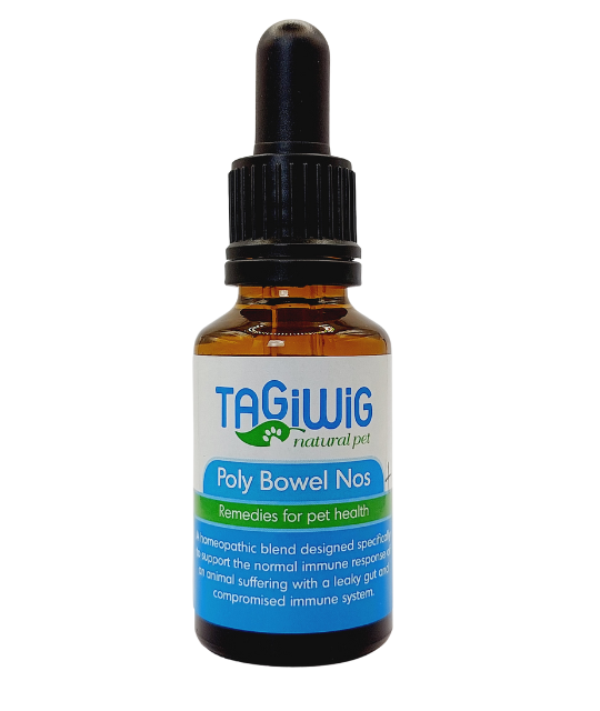Even our pets nowadays suffer from leaky gut syndrome. Through diet, flea and worming treatments, vaccination and daily environmental toxins, the gut is under assault and becomes permeable and leaks. The Poly Bowel remedy aids in rebalancing the gut flora while also detoxing and resetting. In addition, it educates the body on how the flora should look. It is a combination remedy of the nine bowel nosodes plus the Candida nosode and enzymes. It is one of our favourite remedies here at Natural Pet. We have seen so many animals benefit from using it.